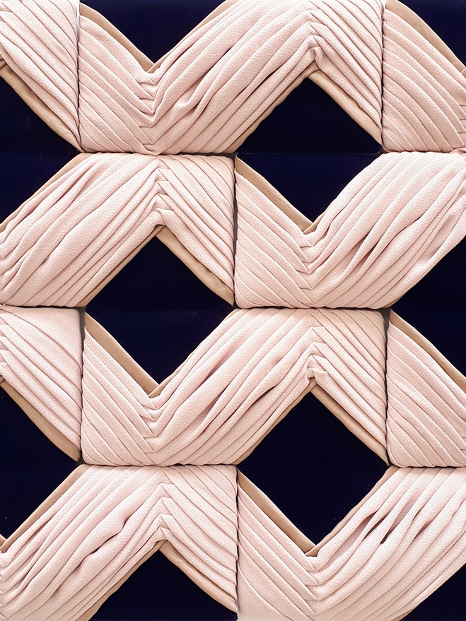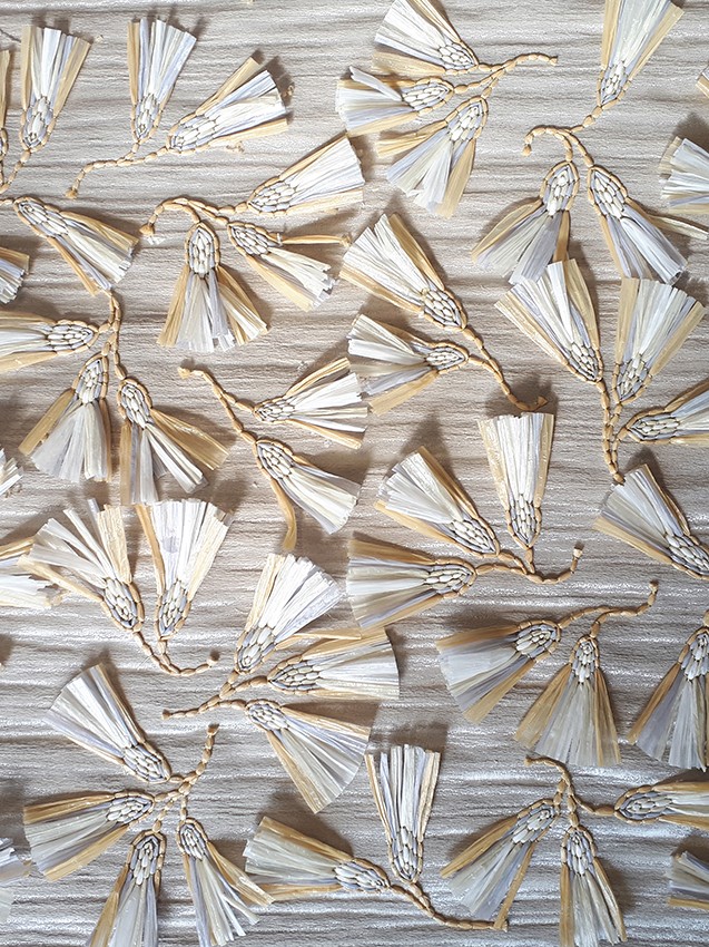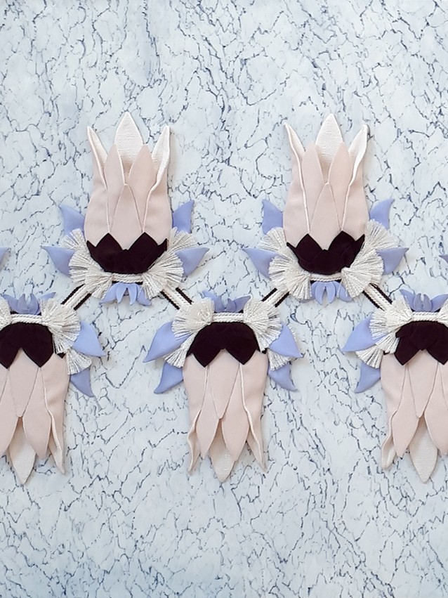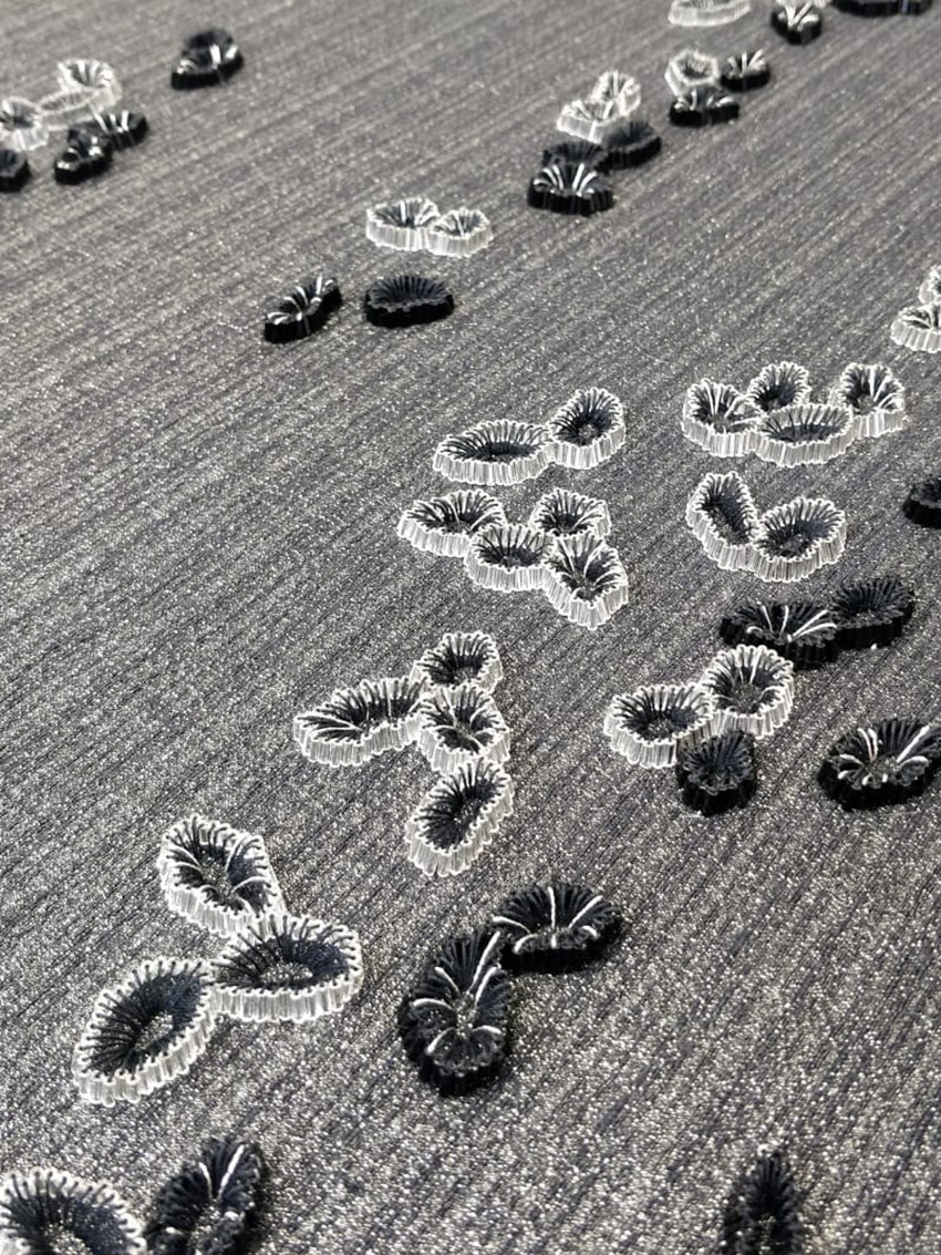 Helmed by Cyrielle Leclère, P+L Studio’s specialty lies in the innovation of traditional craft. Their team of skilled craftspeople produce exceptional, primarily bespoke work, which utilizes flexible materials to create complex sculpture and micro-patterns. Perhaps best known for pushing the limits of traditional embroidery technique, they often produce large scale installation work and scenography. P+L finds inspiration in the endless possibilities afforded by combining fabric, leather, porcelain, wood, metal, and glass.