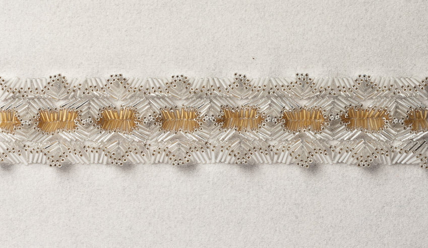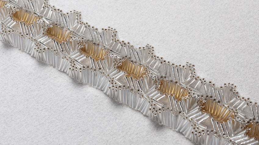 shown in tube beads & thread on wool flannel background – bespoke finishes & sizes available