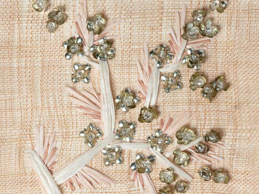 shown in wool, ribbon & raffia on fabric background – bespoke finishes & sizes available