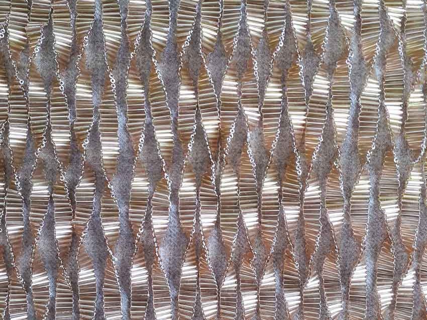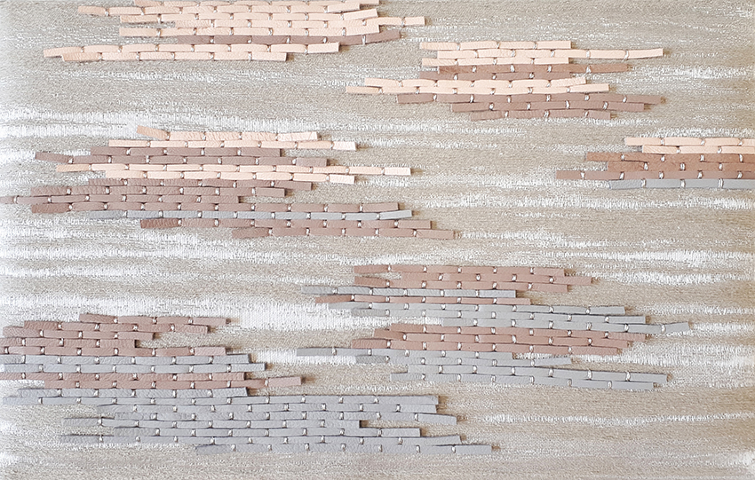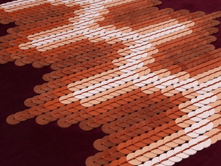 shown in leather & lurex thread on fabric background – bespoke finishes & sizes available