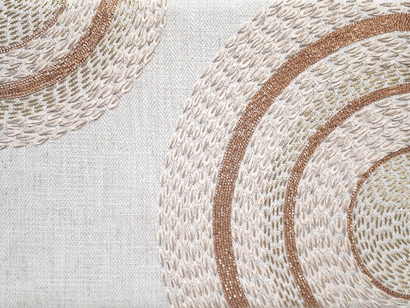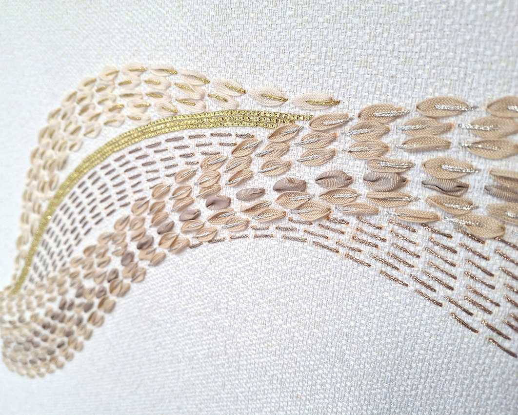shown in cotton ribbons, lamé & lurex on fabric background – bespoke finishes & sizes available