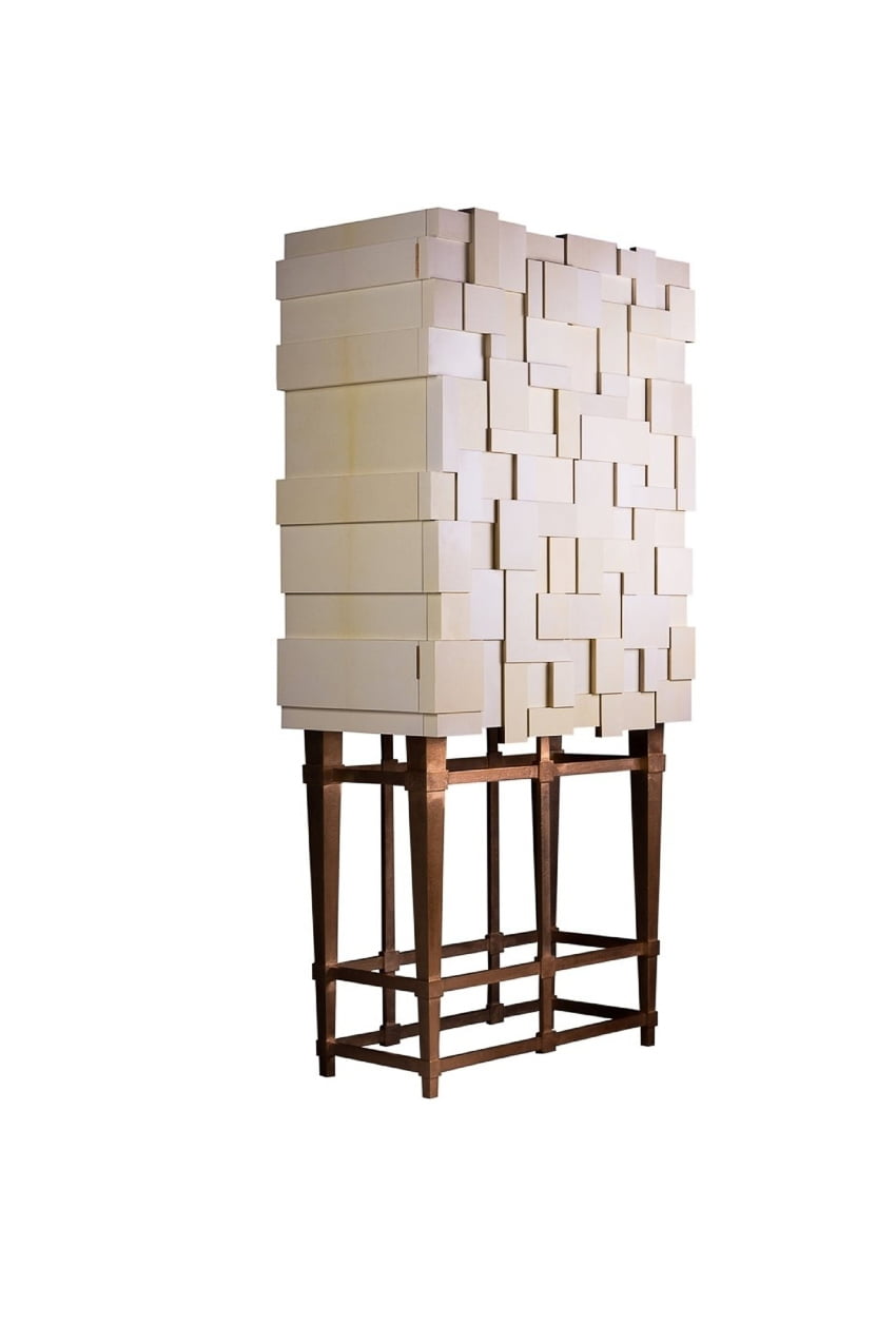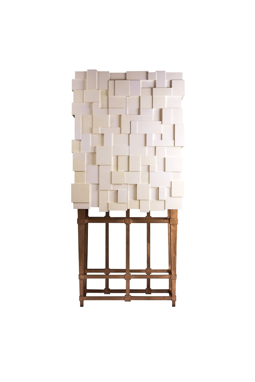 shown in parchment, bronze base with sycamore, mirror, patinated brass interior- bespoke finishes & sizes available