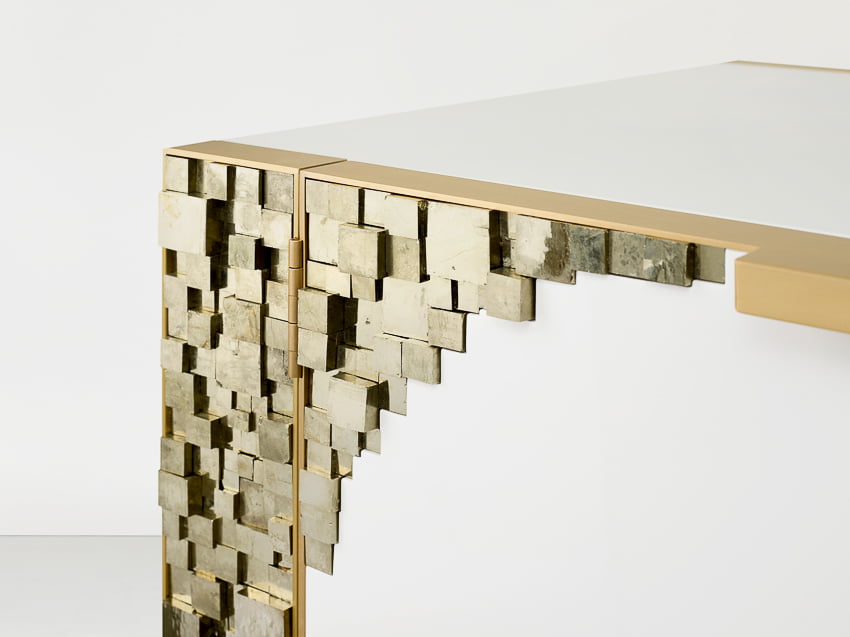 shown in pyrite marquetry, lacquer, brass – bespoke finishes & sizes available