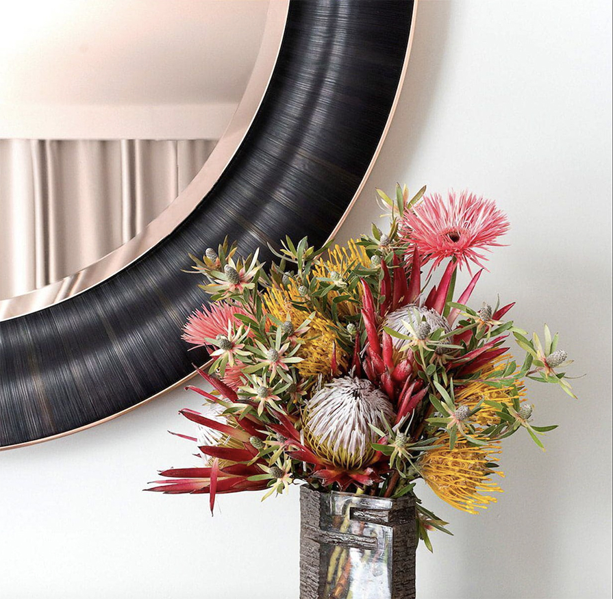 shown in straw marquetry, copper, tinted mirror – bespoke finishes & sizes available