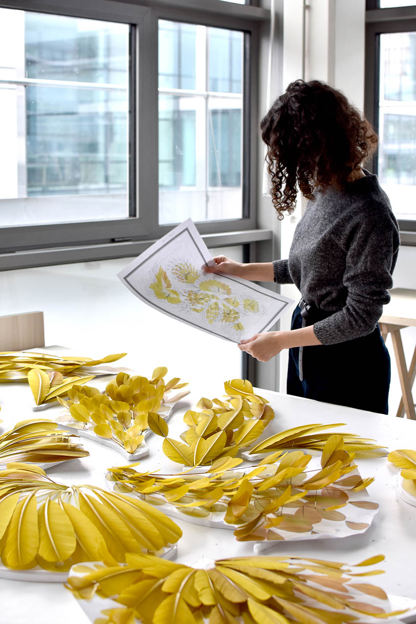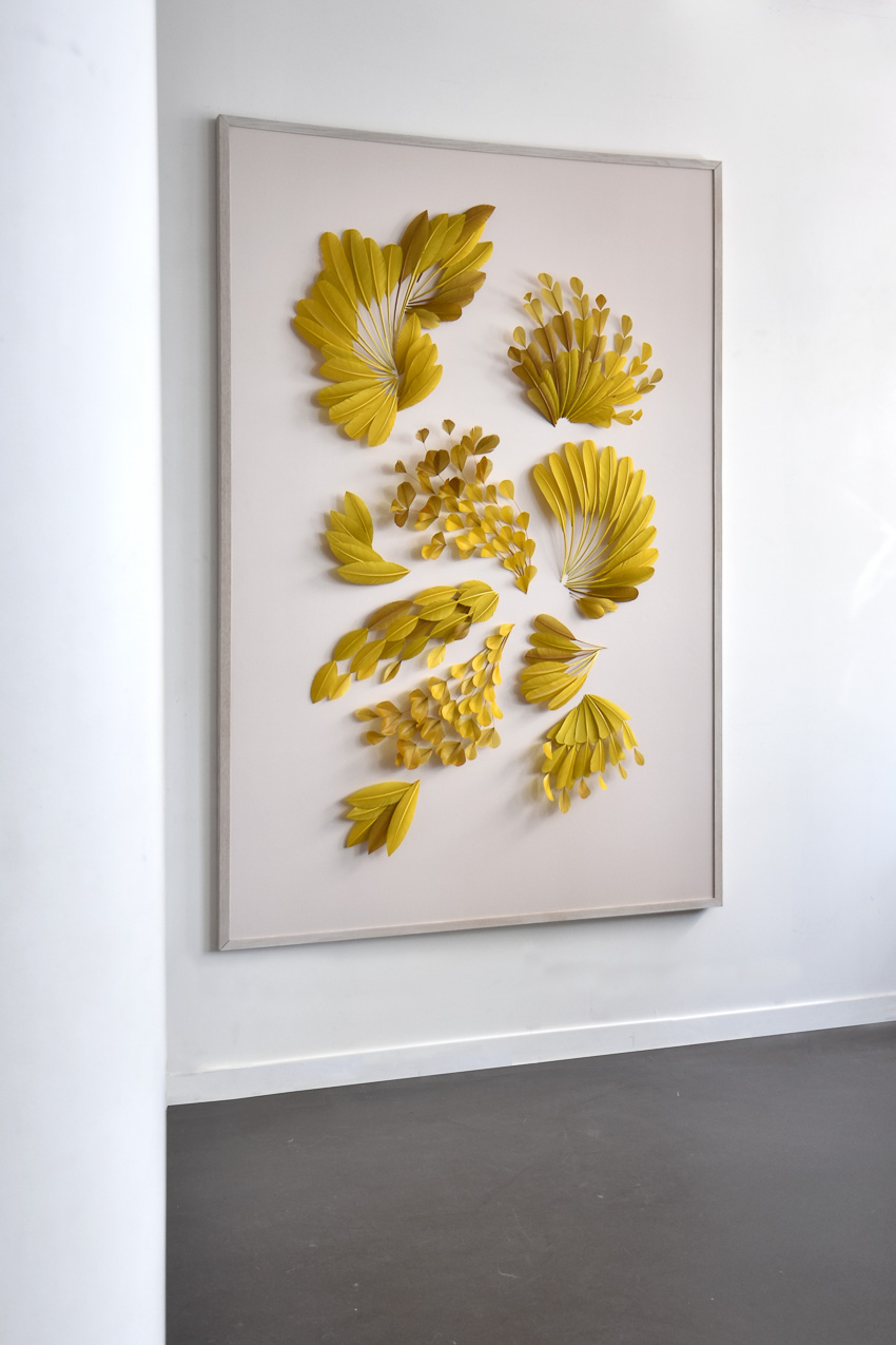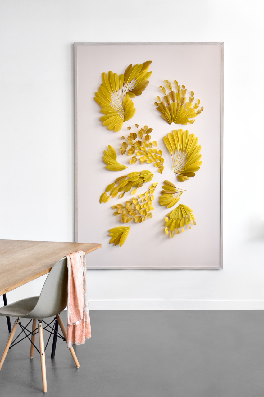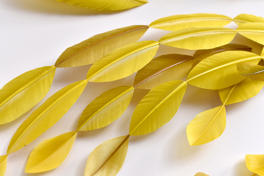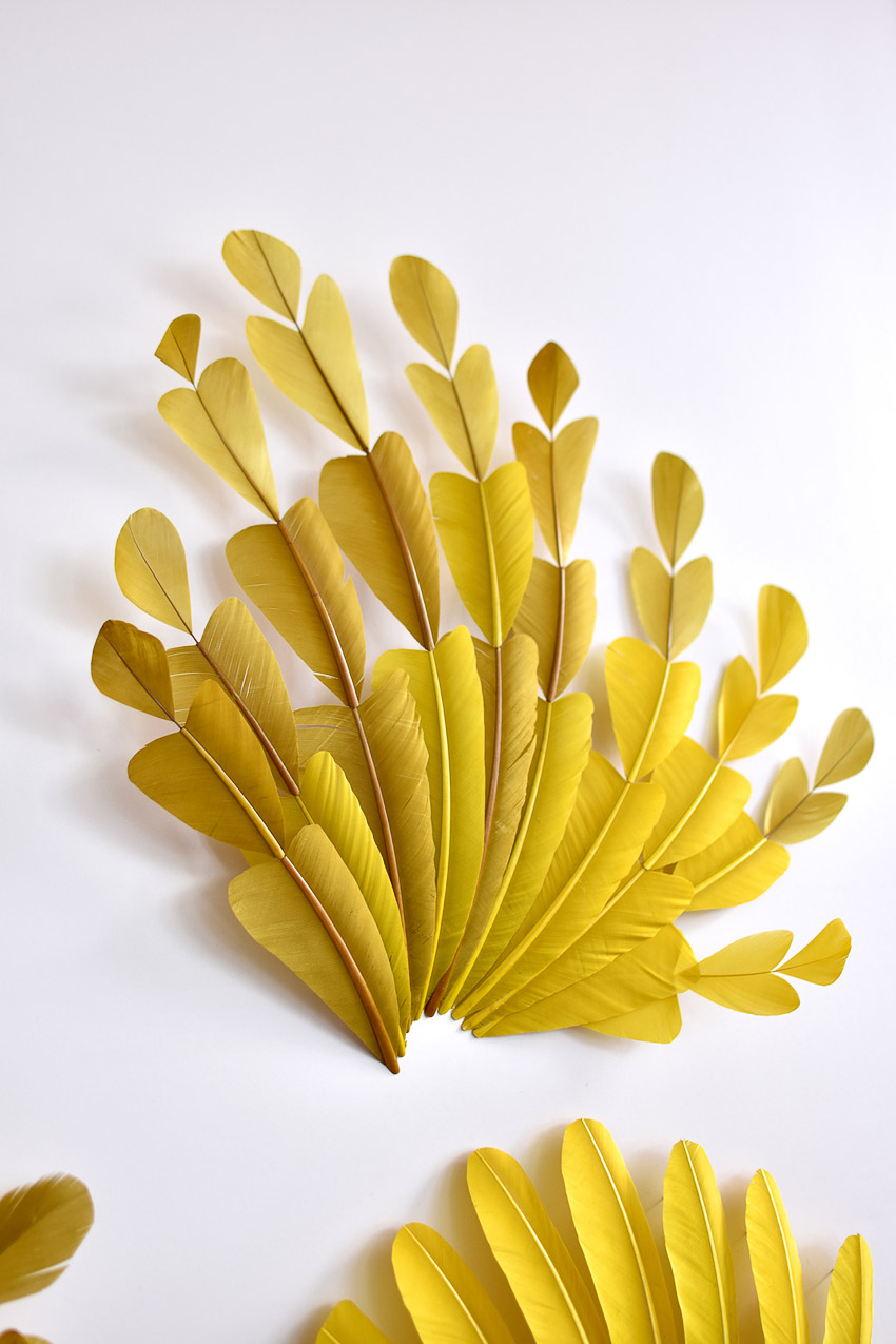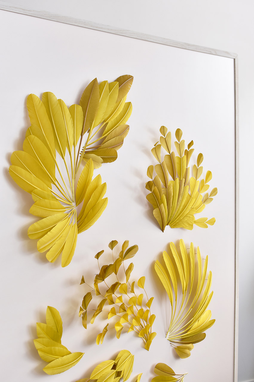 shown in bas-relief composition of hand cut gold & bronze turkey & goose feathers – bespoke finishes & sizes available
