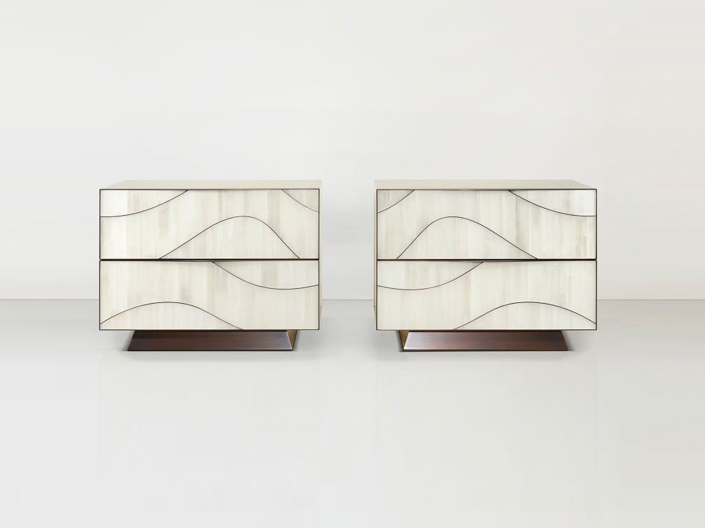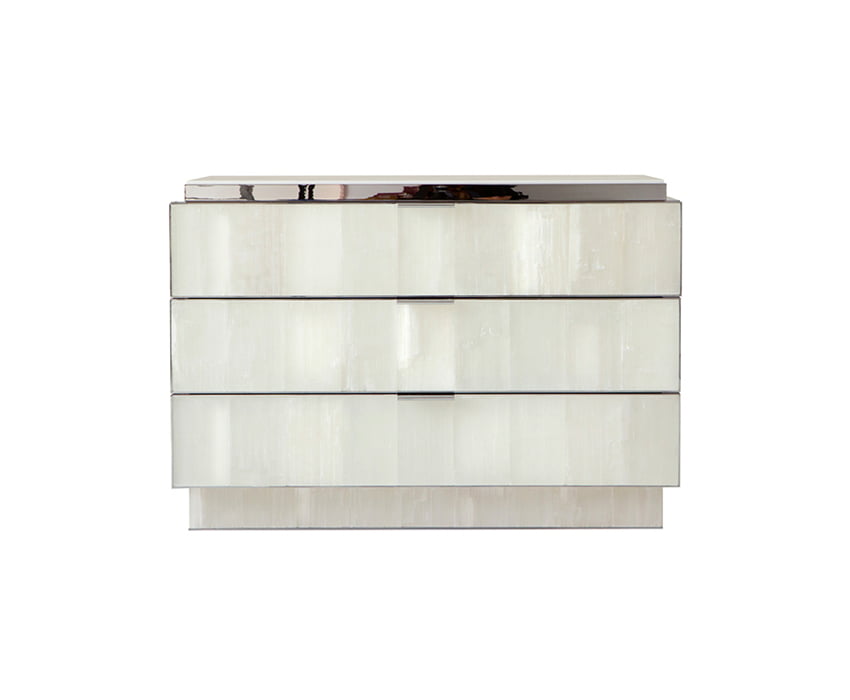 shown in gypse, polished nickel, sycamore interior, marble top – bespoke finishes & sizes available