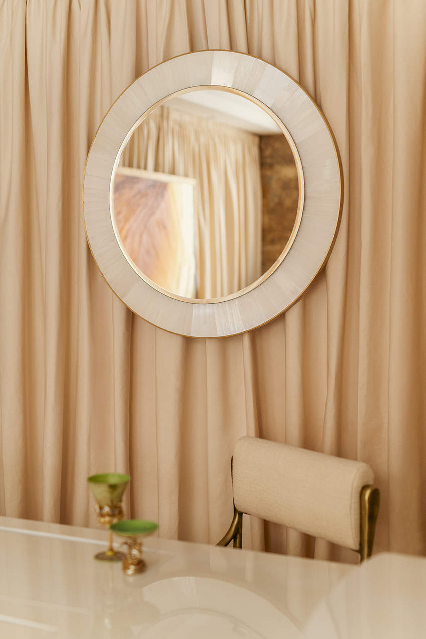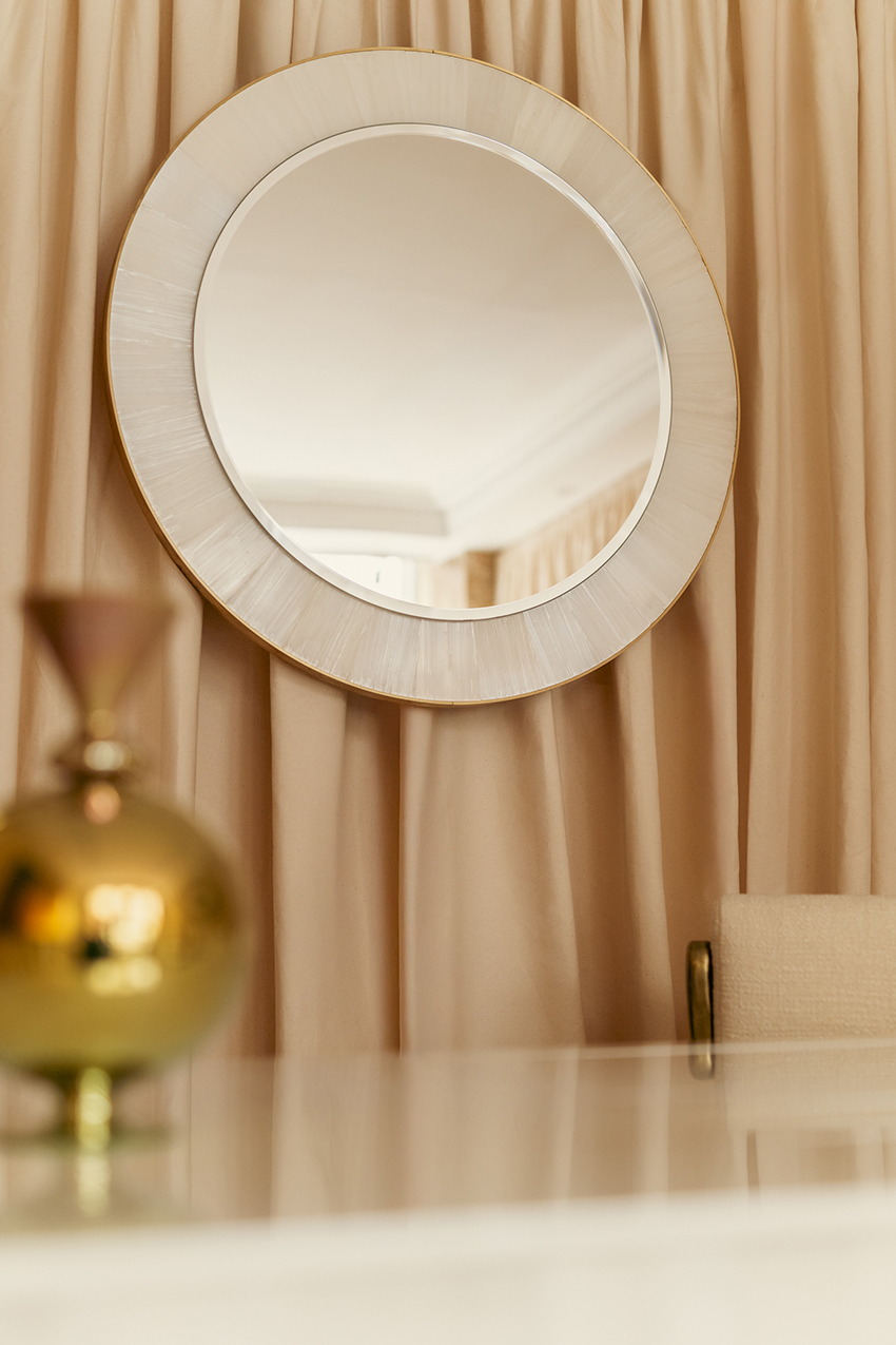 shown in gypse, brass frame, beveled edge mirror – bespoke finishes & sizes available