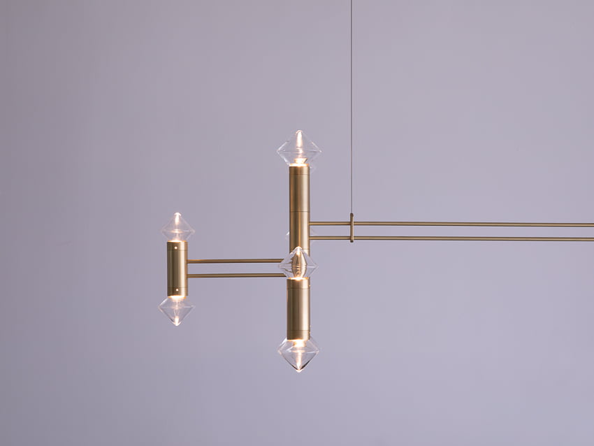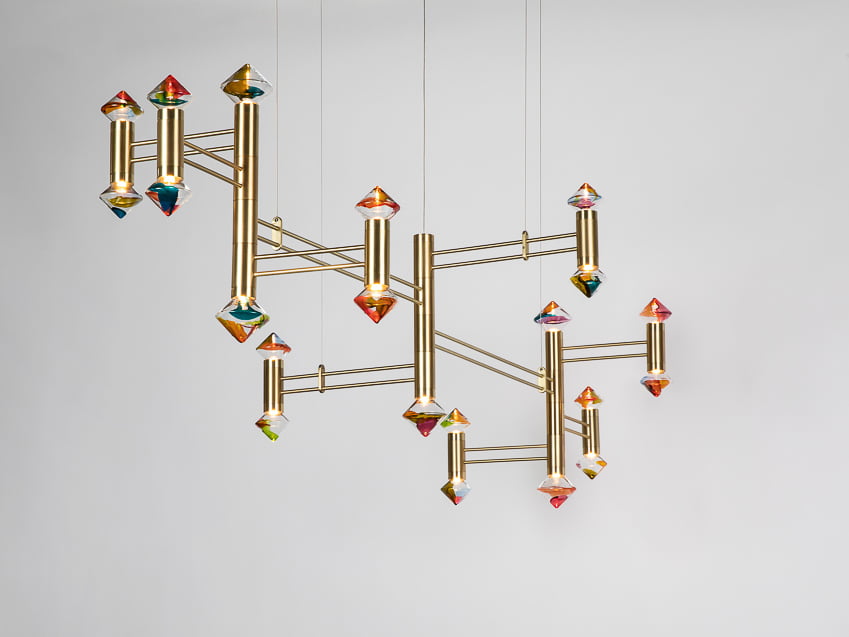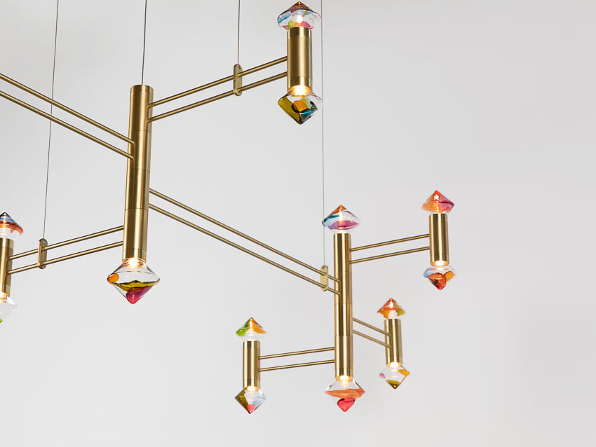 shown in brushed brass, handpainted borosilicate glass – bespoke finishes & sizes available