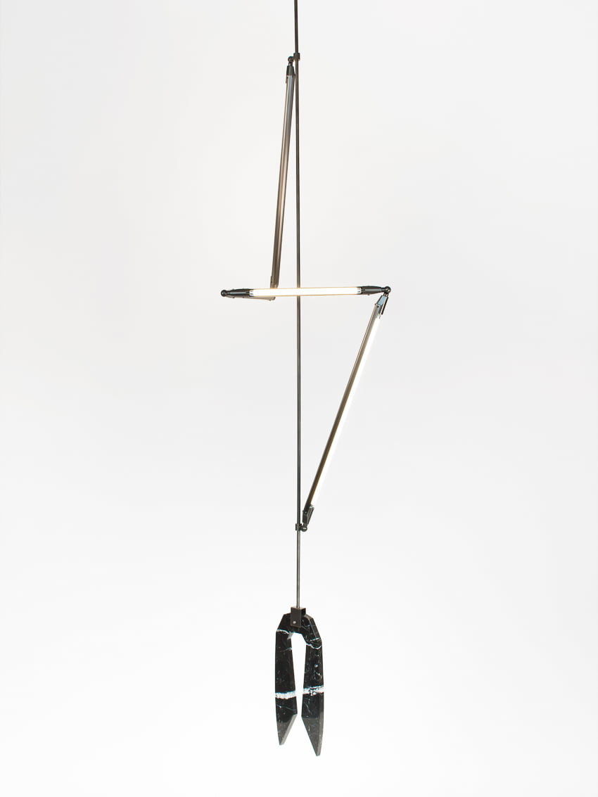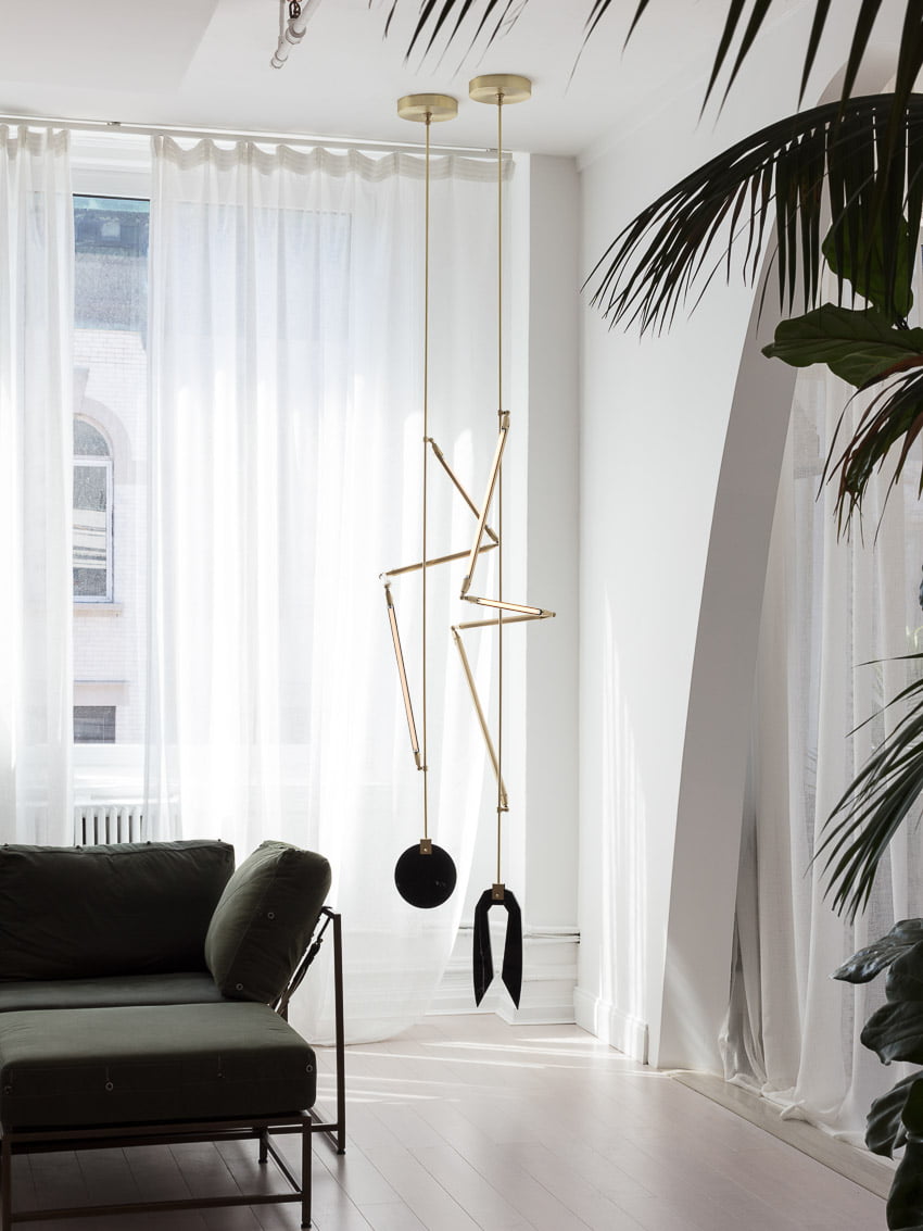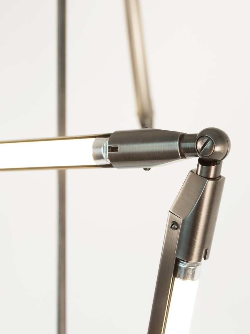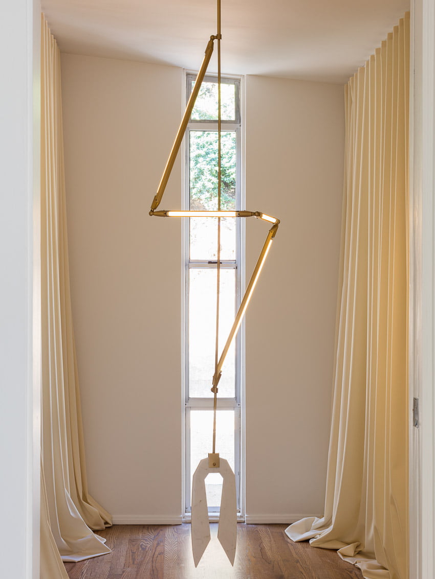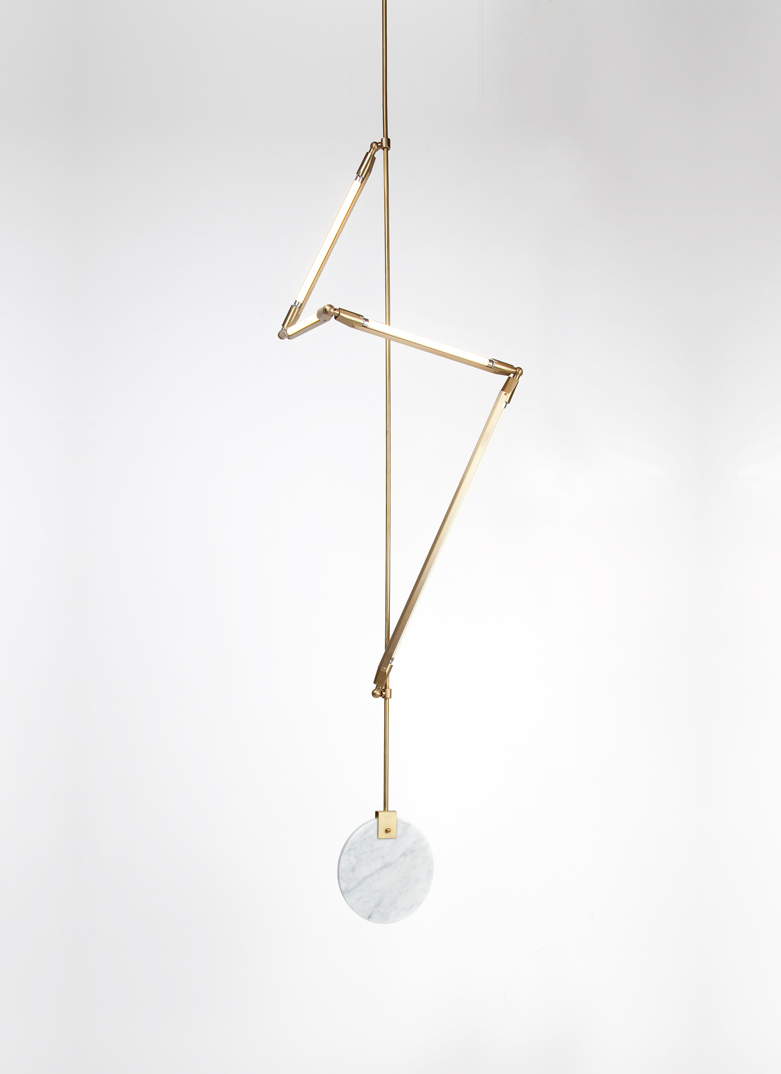 shown in brushed brass, white marble Ellipse counterweight – bespoke finishes & sizes available