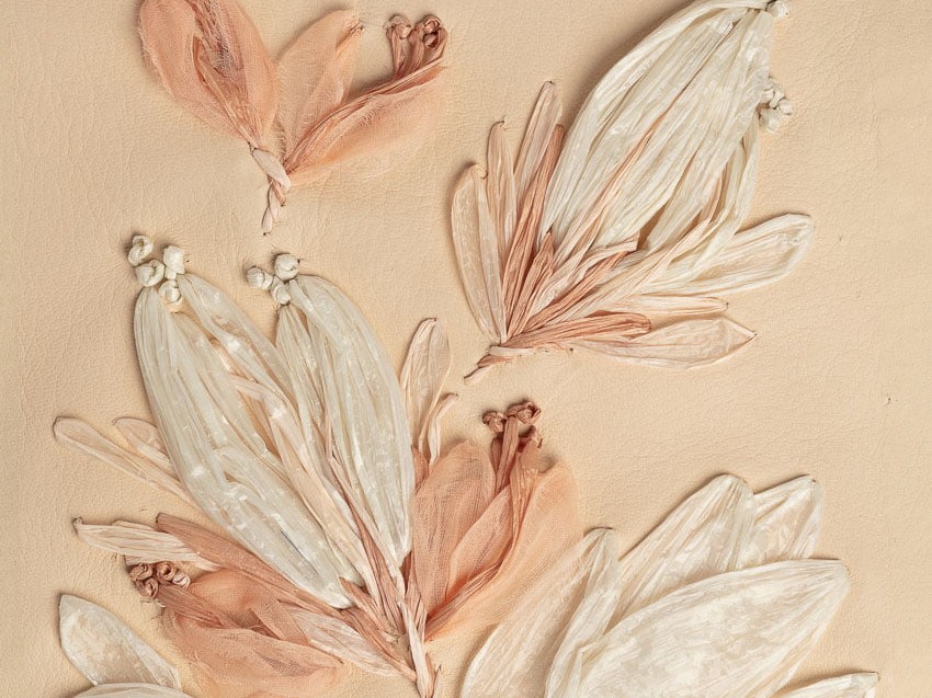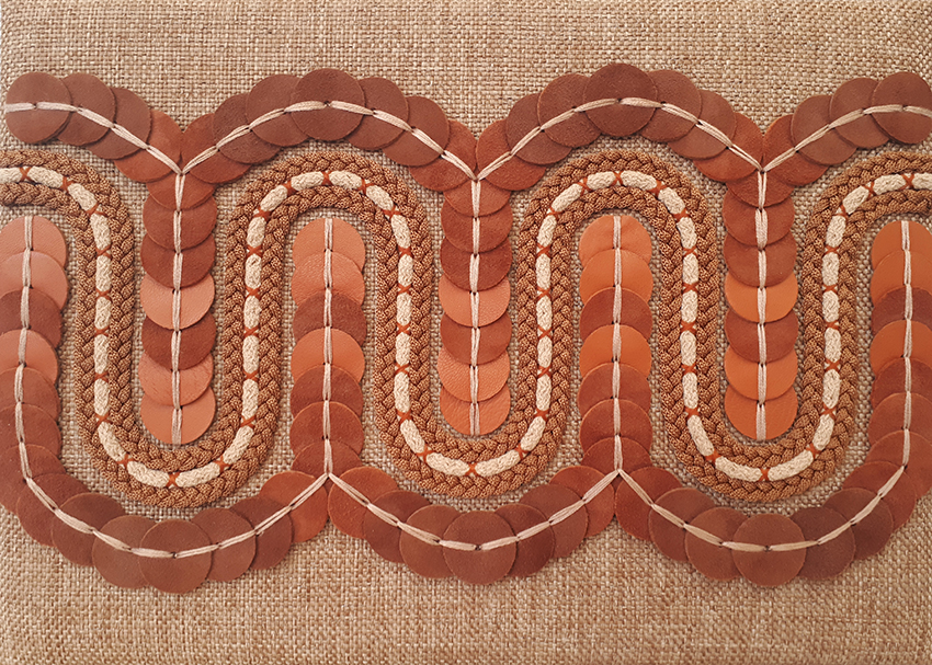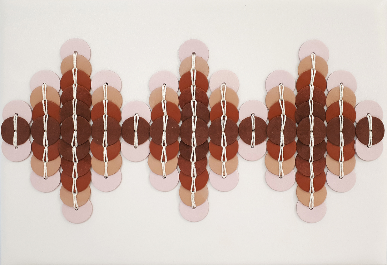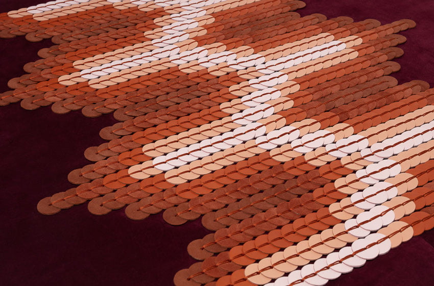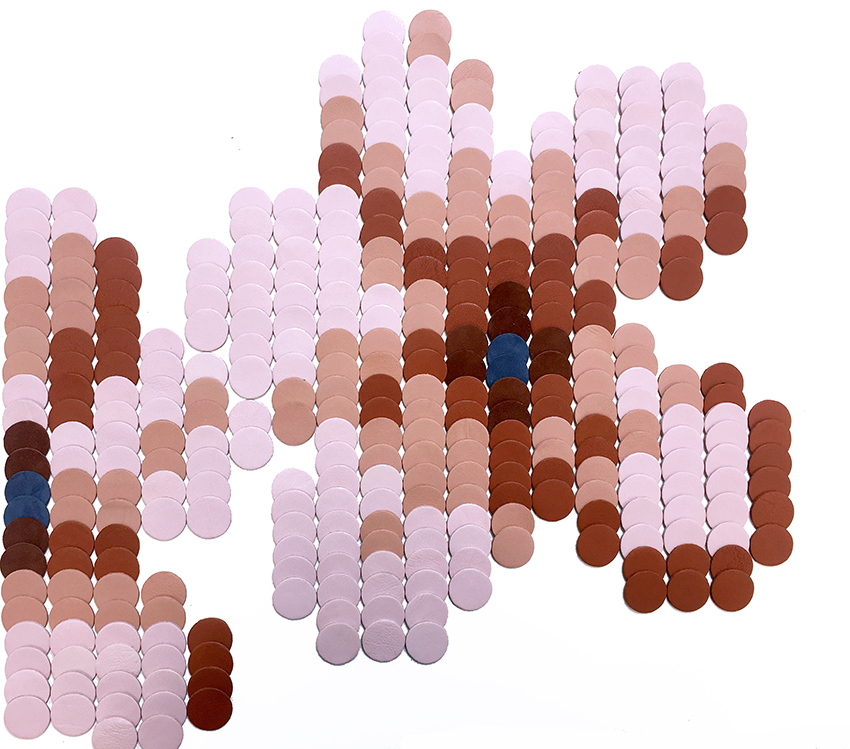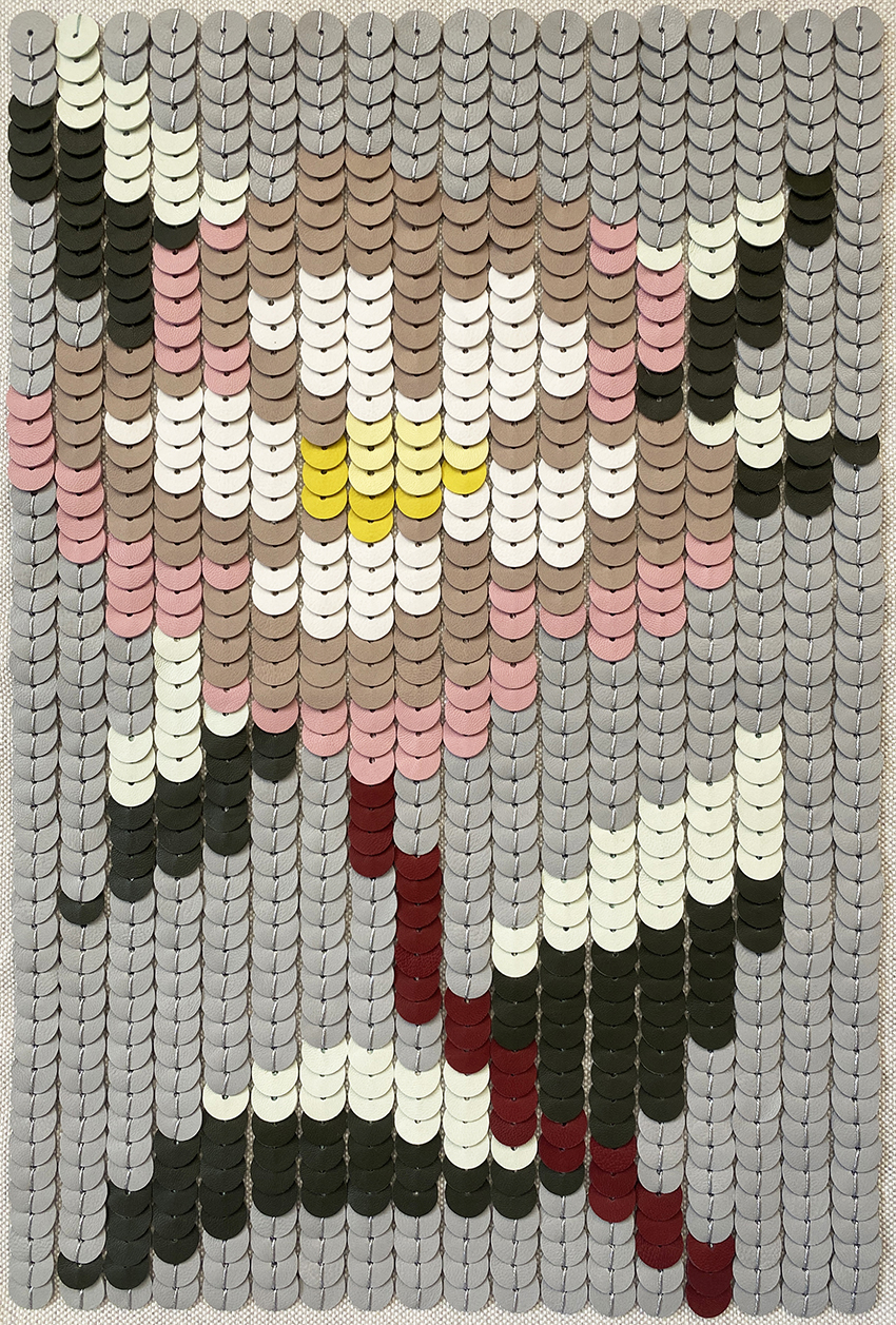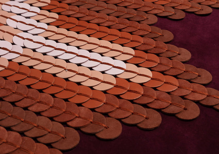 shown in lambskin leather sequins on goatskin suede background – bespoke finishes & sizes available