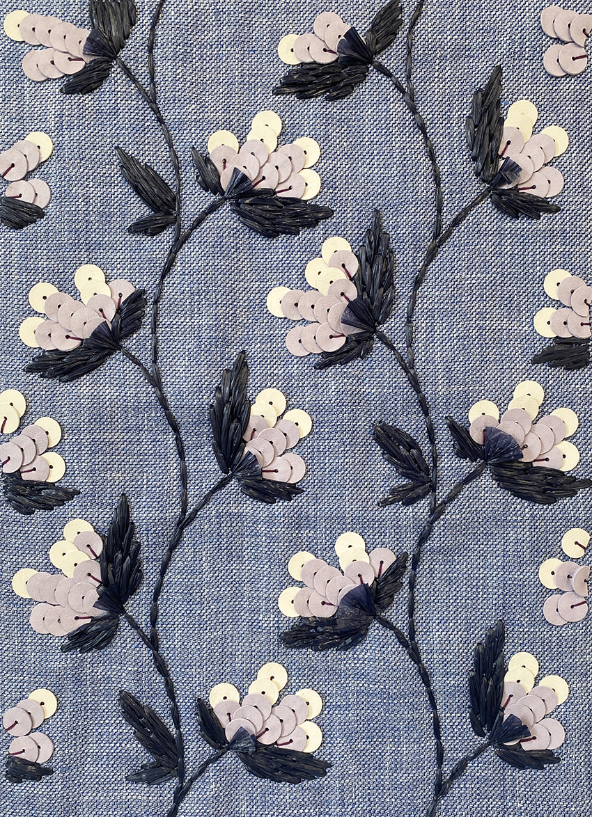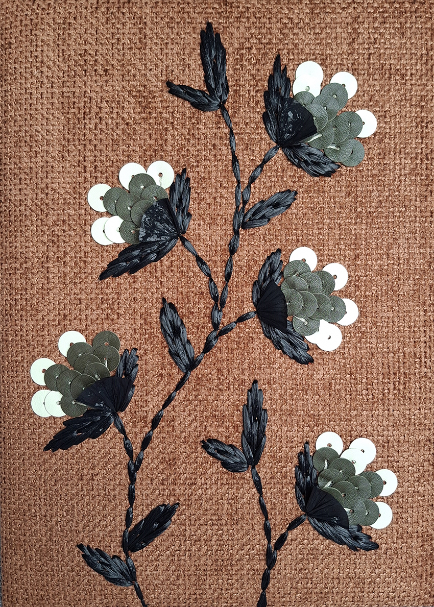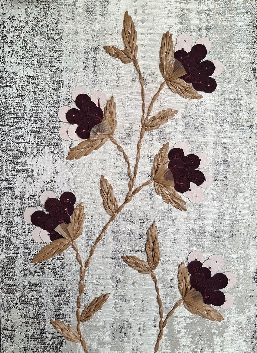 shown in lambskin leather sequins & raffia on fabric background – bespoke finishes & sizes available