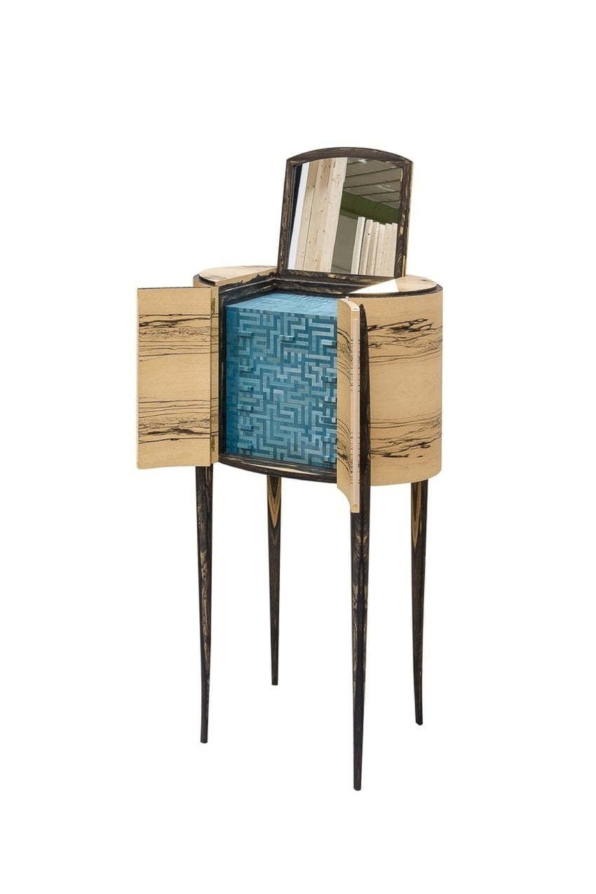 shown in white ebony, straw marquetry, suede drawer lining – bespoke finishes & sizes available