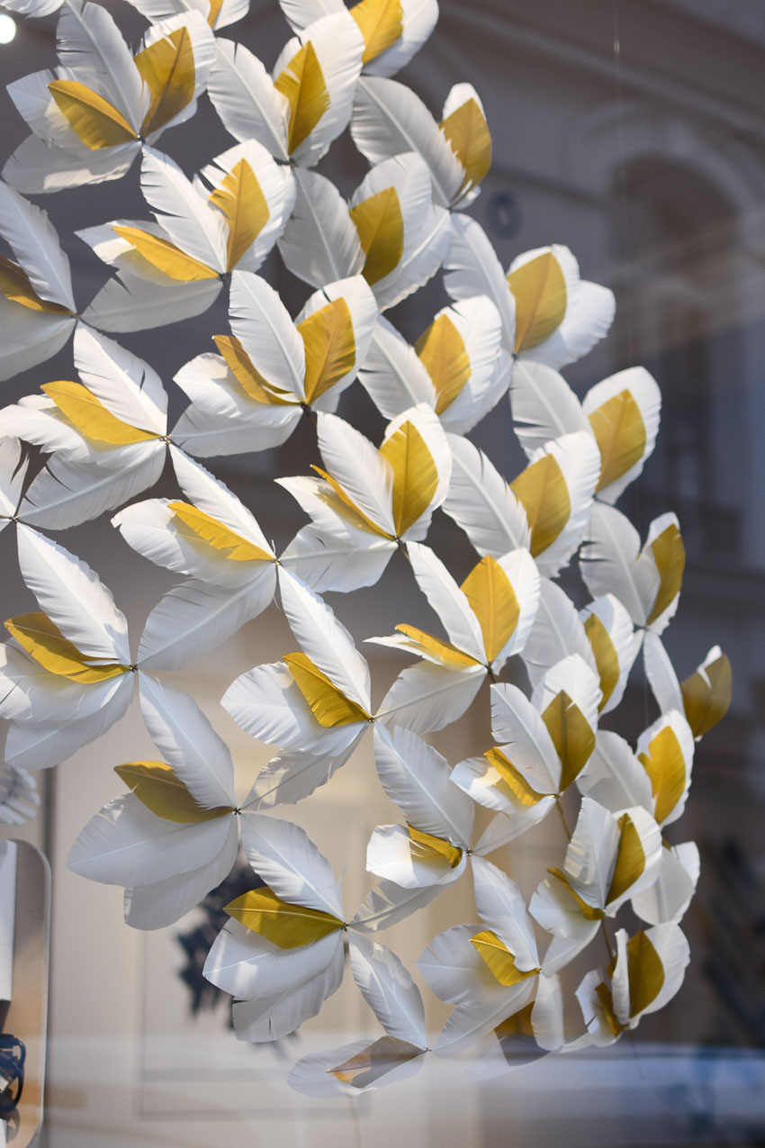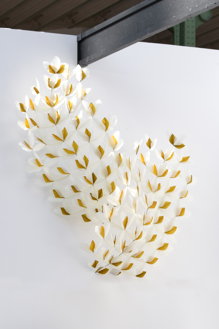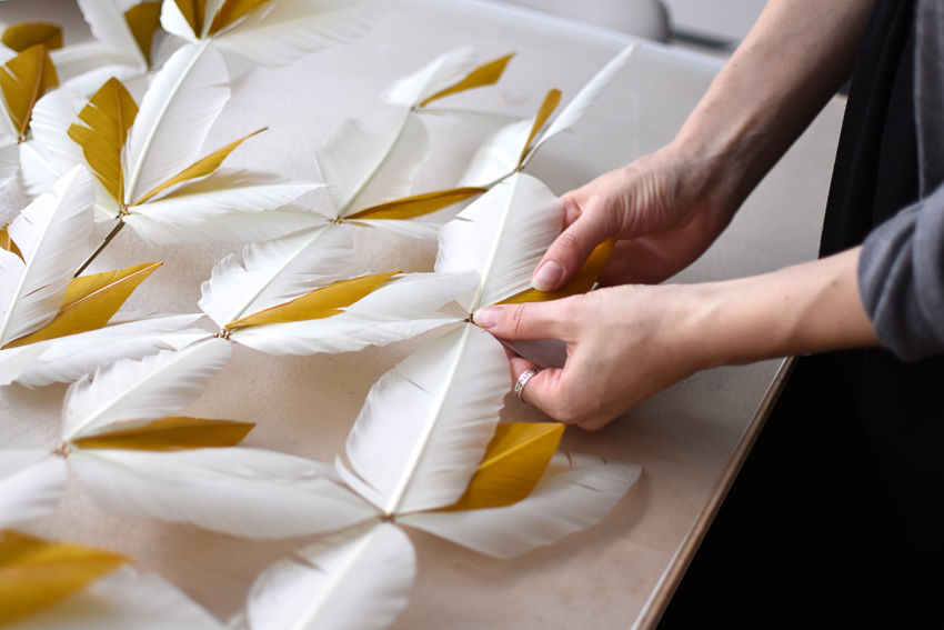 shown in hand cut turkey feathers, brass – bespoke finishes & sizes available