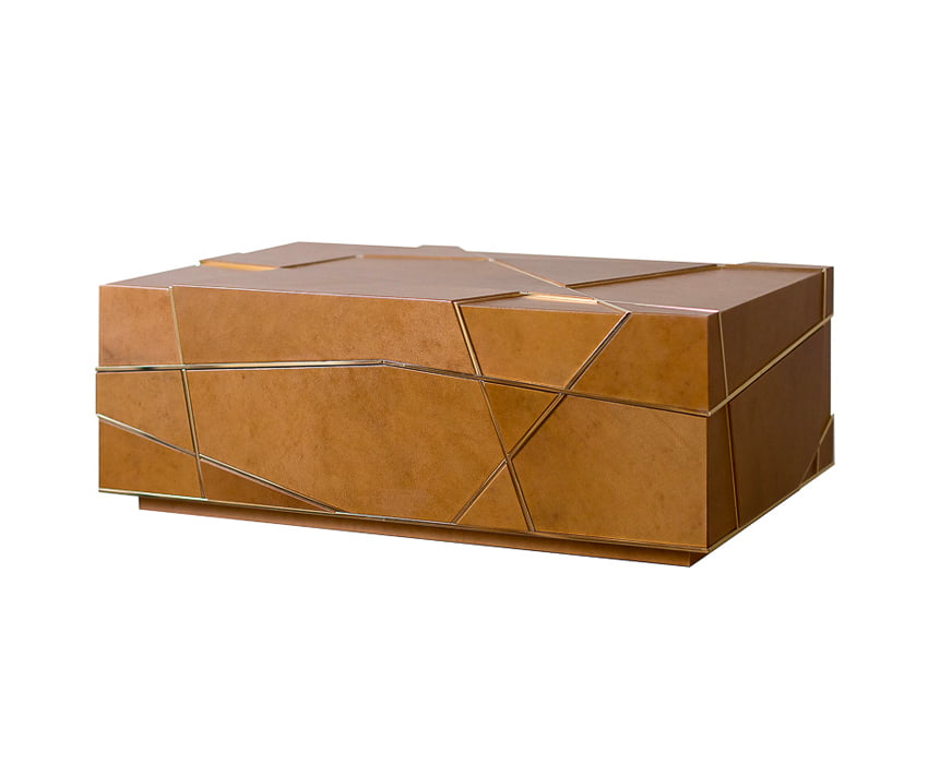 shown in tobacco sheep parchment, 12k gold plated brass, Spanish cedar interior – bespoke finishes & sizes available