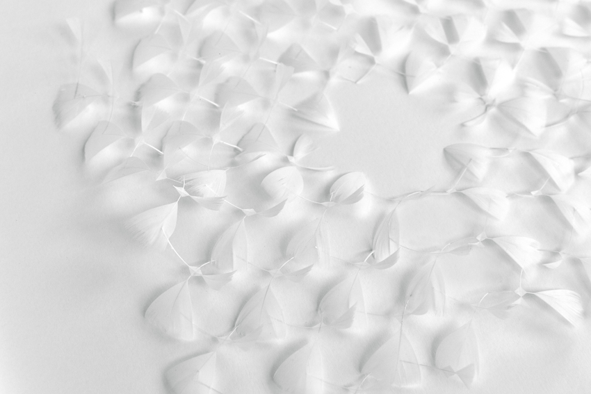 shown in hand cut white goose feathers – bespoke finishes & sizes available