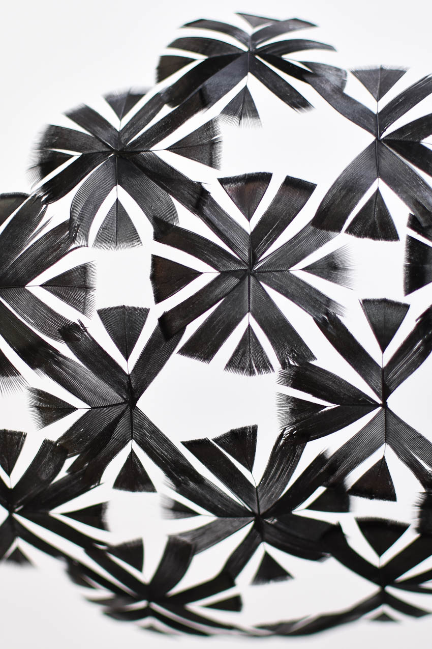 shown in hand cut black turkey feathers – bespoke finishes & sizes available