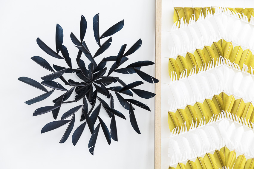 shown in hand cut black turkey feathers – bespoke finishes & sizes available