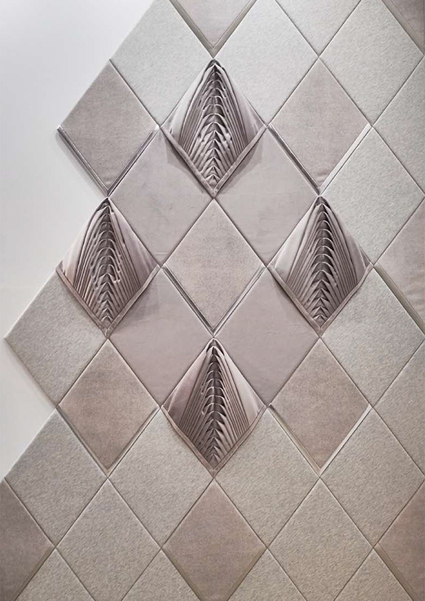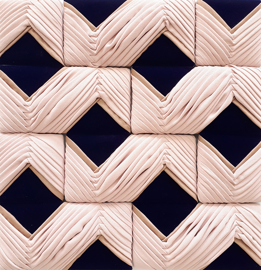 shown in pleated silk on velvet upholstered tiles – bespoke finishes & sizes available