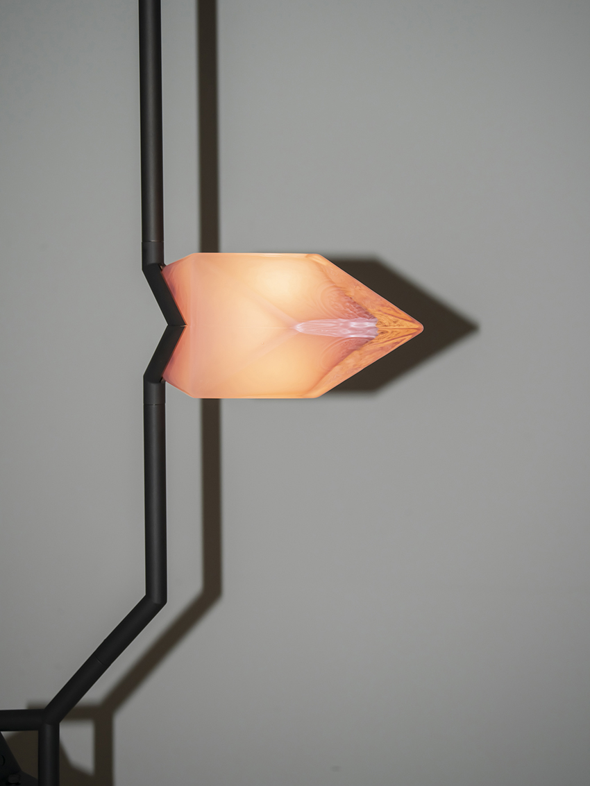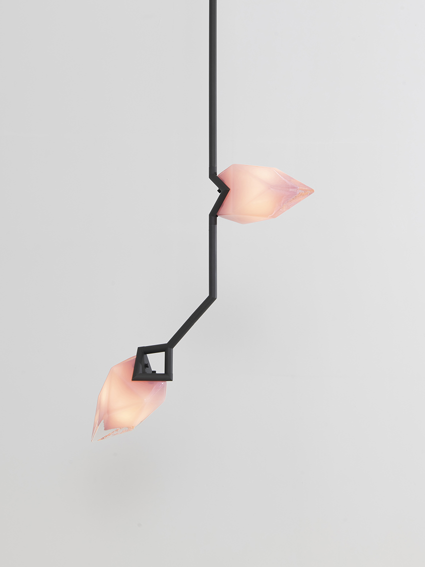 shown in oil-rubbed bronze, pink glass – bespoke finishes & sizes available