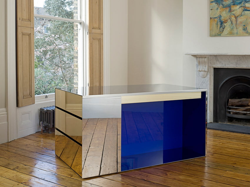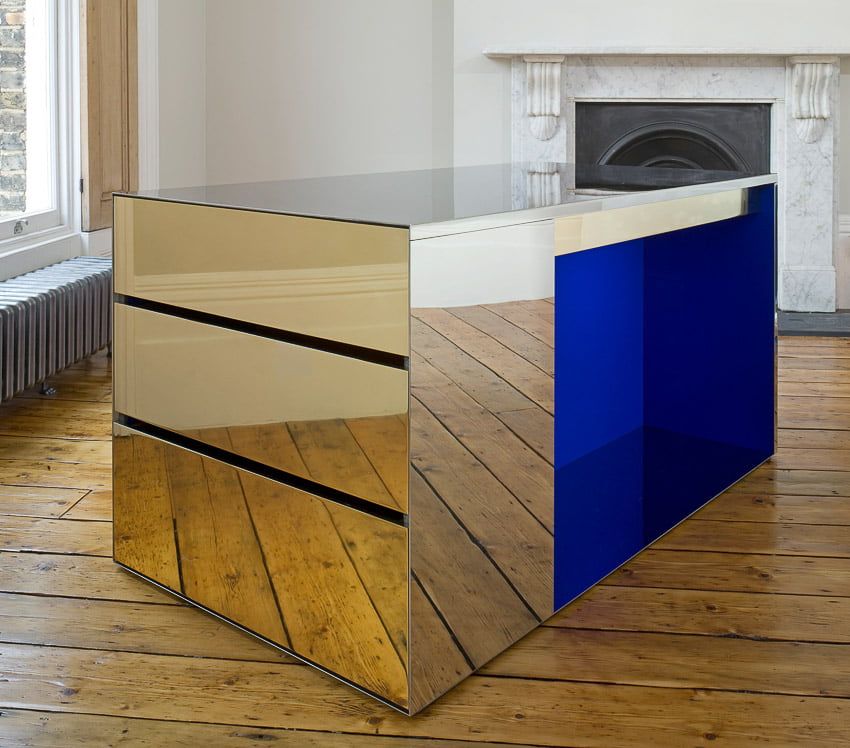 Categories: Desks / Dining Tables, Furniture, Paul Kelley, Tables Tags: Blue, Brass, Stainless Steel