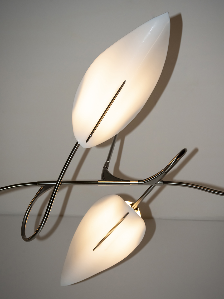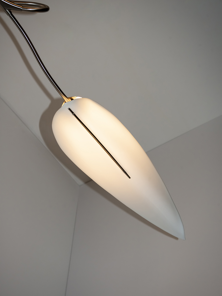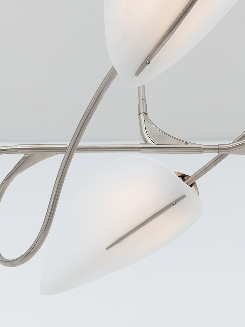 shown in satin nickel, white glass – bespoke finishes & sizes available
