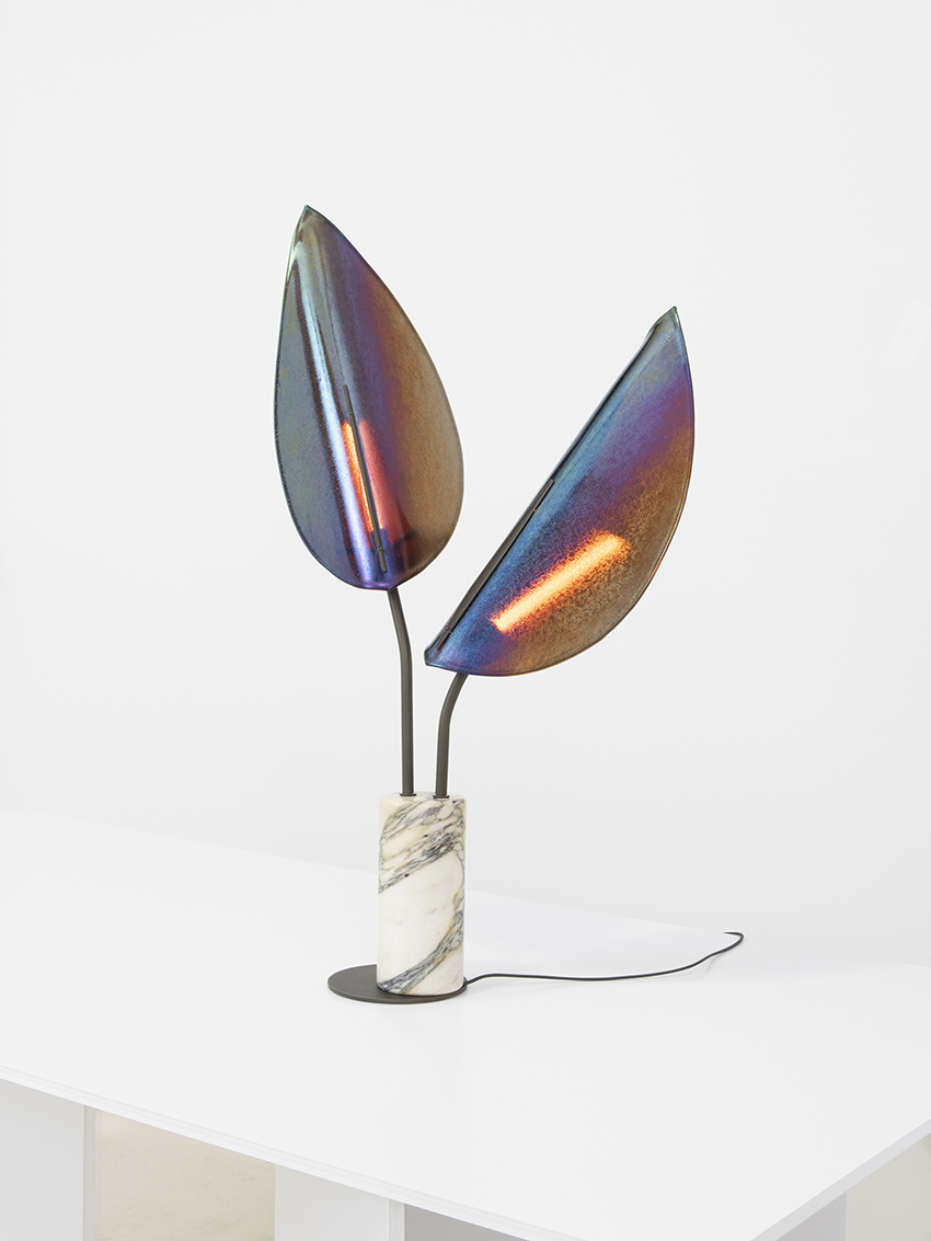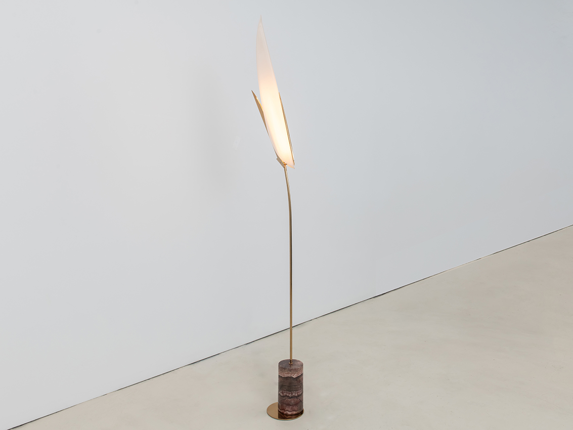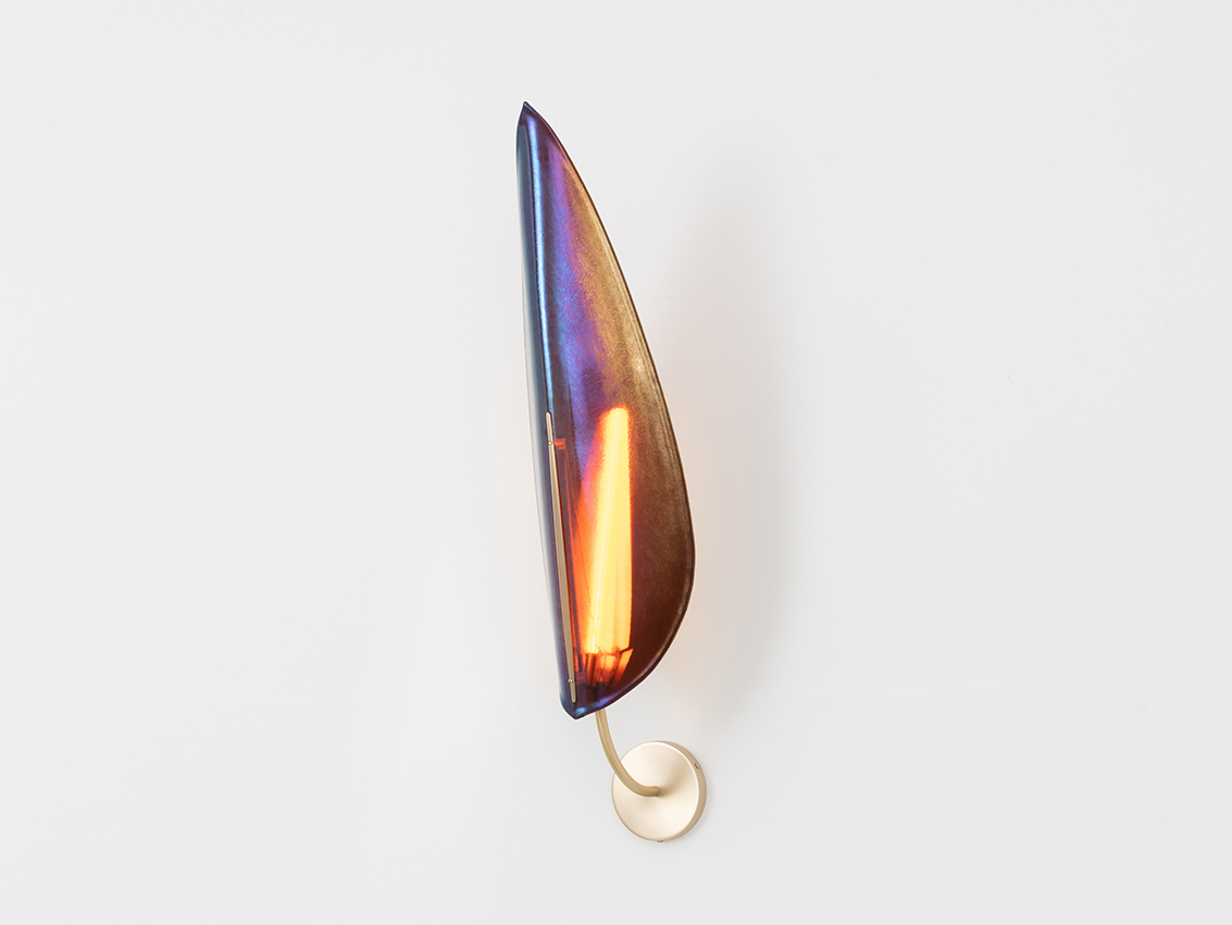 shown in medium antique brass, iridescent Sienna glass, Calacatta Viola – bespoke finishes & sizes available